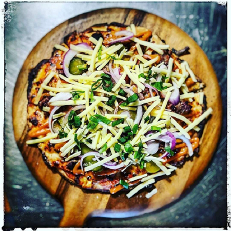 Vegan Nachos Parma$26.99Oven baked plant based schnitzel & chips, layered with napoli sauce, vegan bio cheese, nacho chips, mild salsa, home made zesty guacamole & sprinkled with spring onions