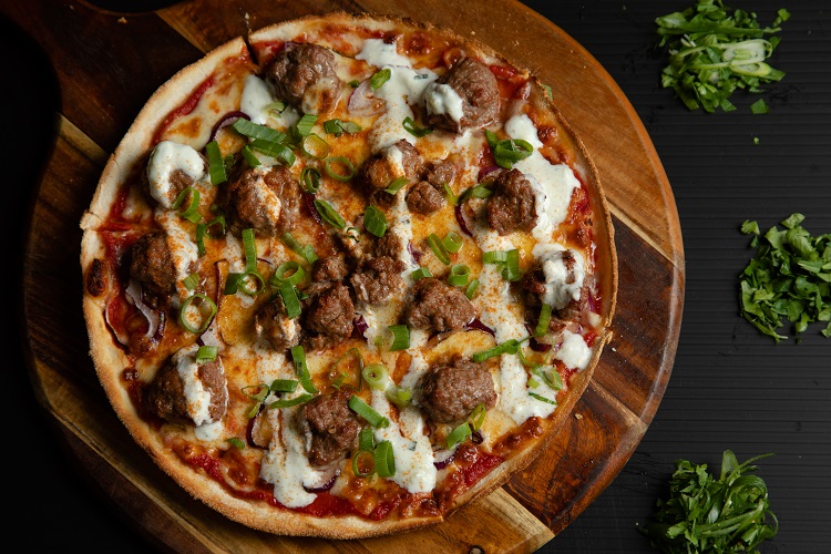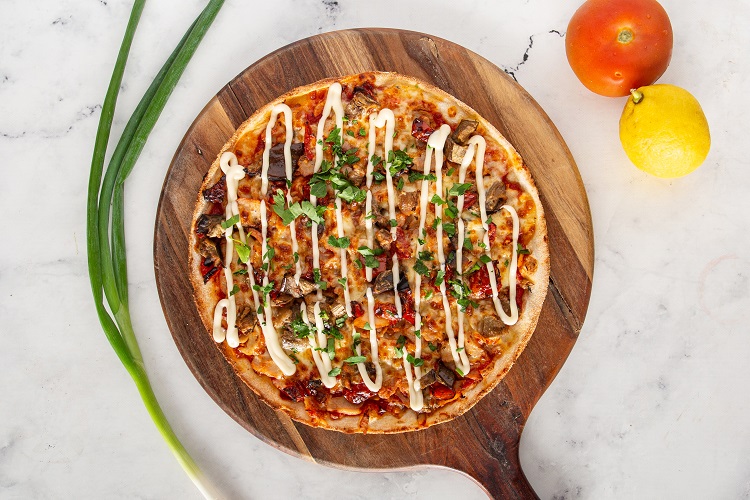 Premium Tomato Sauce, Mozzarella Cheese, Crumbled Falafel Pieces, Semi Dried Tomato, Red Onions, topped with Tahini Dip & Parsley